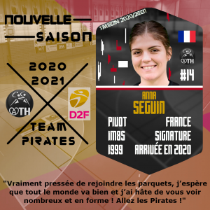 Le club de l’ATH Handball est fier d’officialiser l’arrivée de sa première recrue, Anna SEGUIN, qui évoluera au poste de Pivot lors de la saison 2020/2021. Elle sera associée à ce poste à Manon HEMMERLIN suite aux départs de Marion LAHCENE et Sarah MULLER.